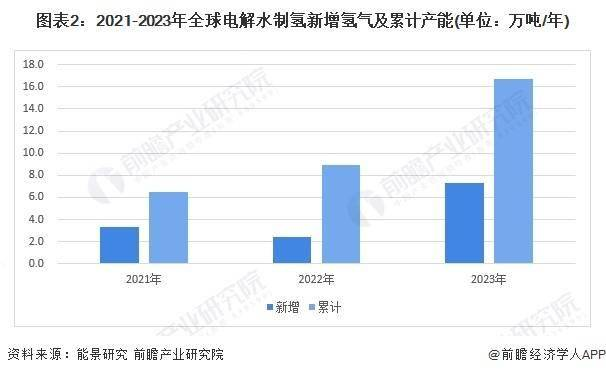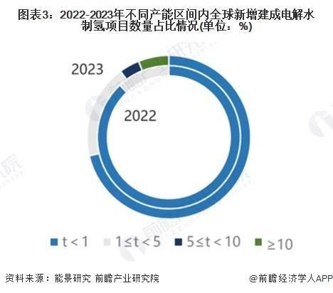 2023年全球电解水制氢进入产能提速增长期。据统计,2023年1月至12月,全球(含中国)新建成电解水制氢产能约7.3万吨/年,同比增长约204%;到2023年12月底,全球(含中国)电解水制氢累计产能约达16.7万吨/年,其中,海外(不含中国)电解水制氢累计产能达到约8.9万吨/年。