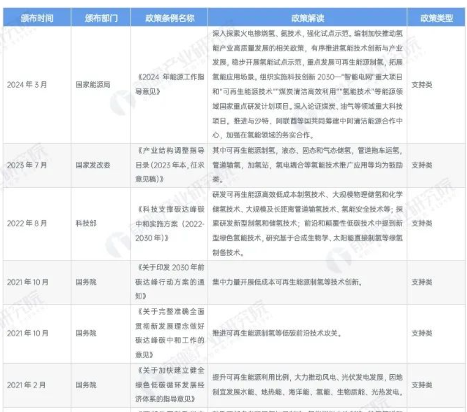 随着全球气温变暖加速,发展低碳能源成为时代重任,中国在探索应用低碳能源方面走在全球前列,氢能源作为清洁低碳能源,受到国家的关注和支持。近些年来,国家陆续出台各项电解水制氢相关政策,支持高效利用廉价且丰富的电解水制氢,引导电解水制氢行业产业链上中下游的发展,为电解水制氢行业的发展提供了良好的环境。我国电解水制氢行业主要政策如下: