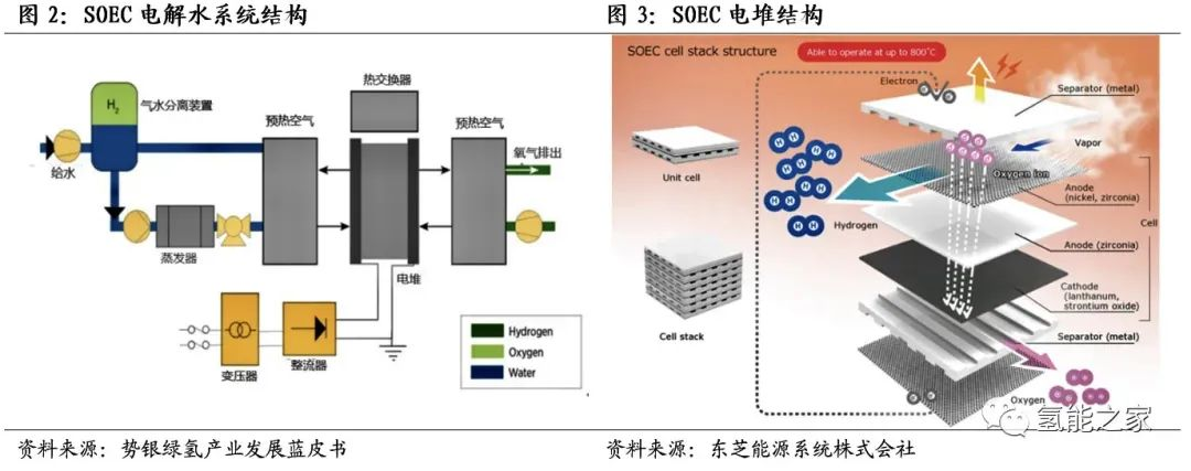 SOEC电解槽进料为水蒸气,若添加二氧化碳后,则可生成合成气(氢气和一氧化碳的混合物),再进一步生产合成燃料 (如柴油、航空燃油)。因此SOEC技术有望被广泛应用于二氧化碳回收、燃料生产和化学合成品,这是欧盟近年来的研发重点。